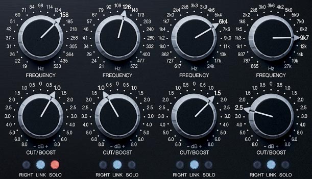 La funzione solo vanta una curva di guadagno fisso selezionata a mano per un targeting di frequenza preciso ed efficiente. Accoppiata con il flusso seriale dell'EQ, puoi immediatamente sentire l'interattività tra le bande.