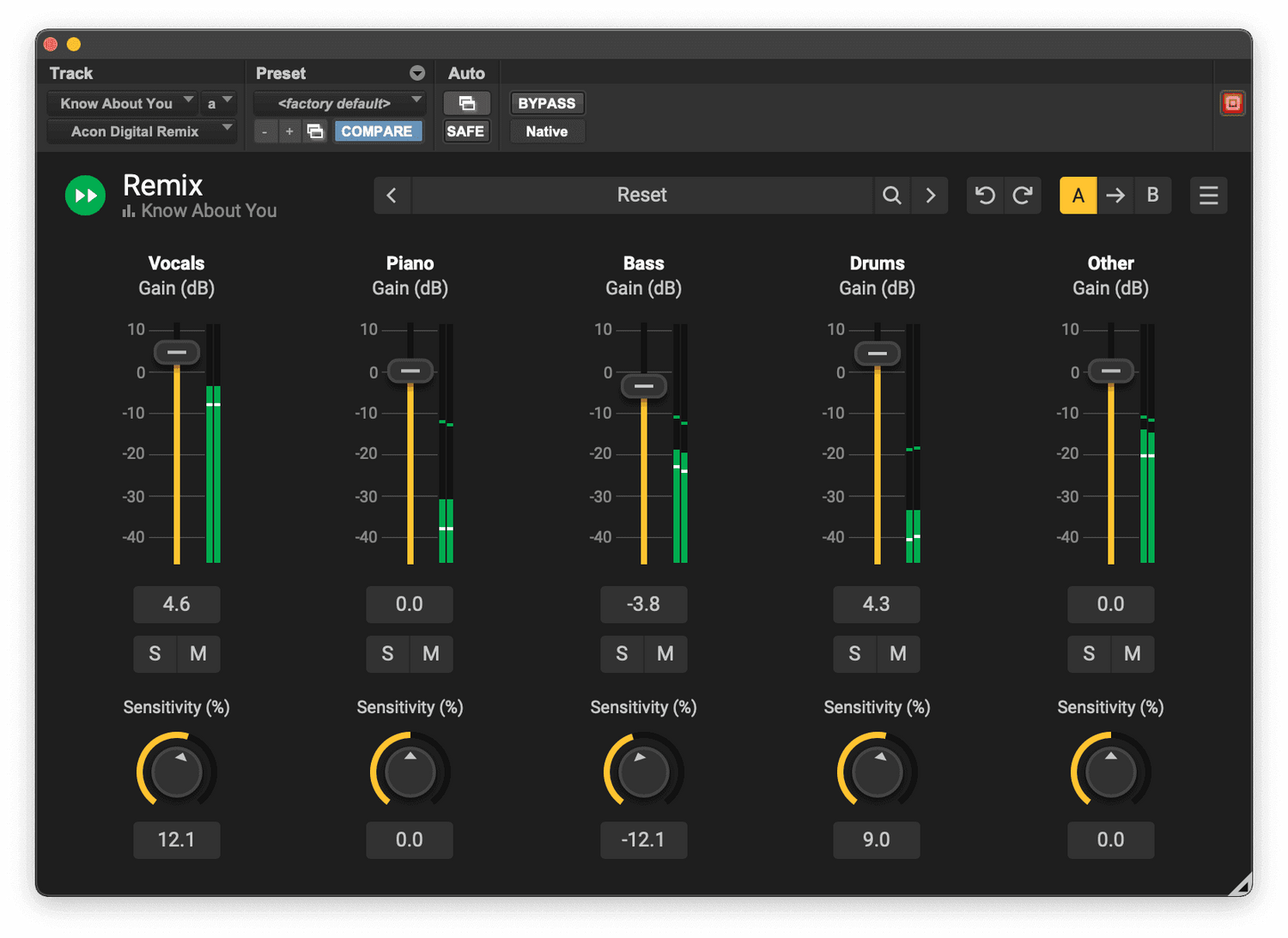- Separate mixes into five stems – Vocals, Piano, Bass, Drums and Other