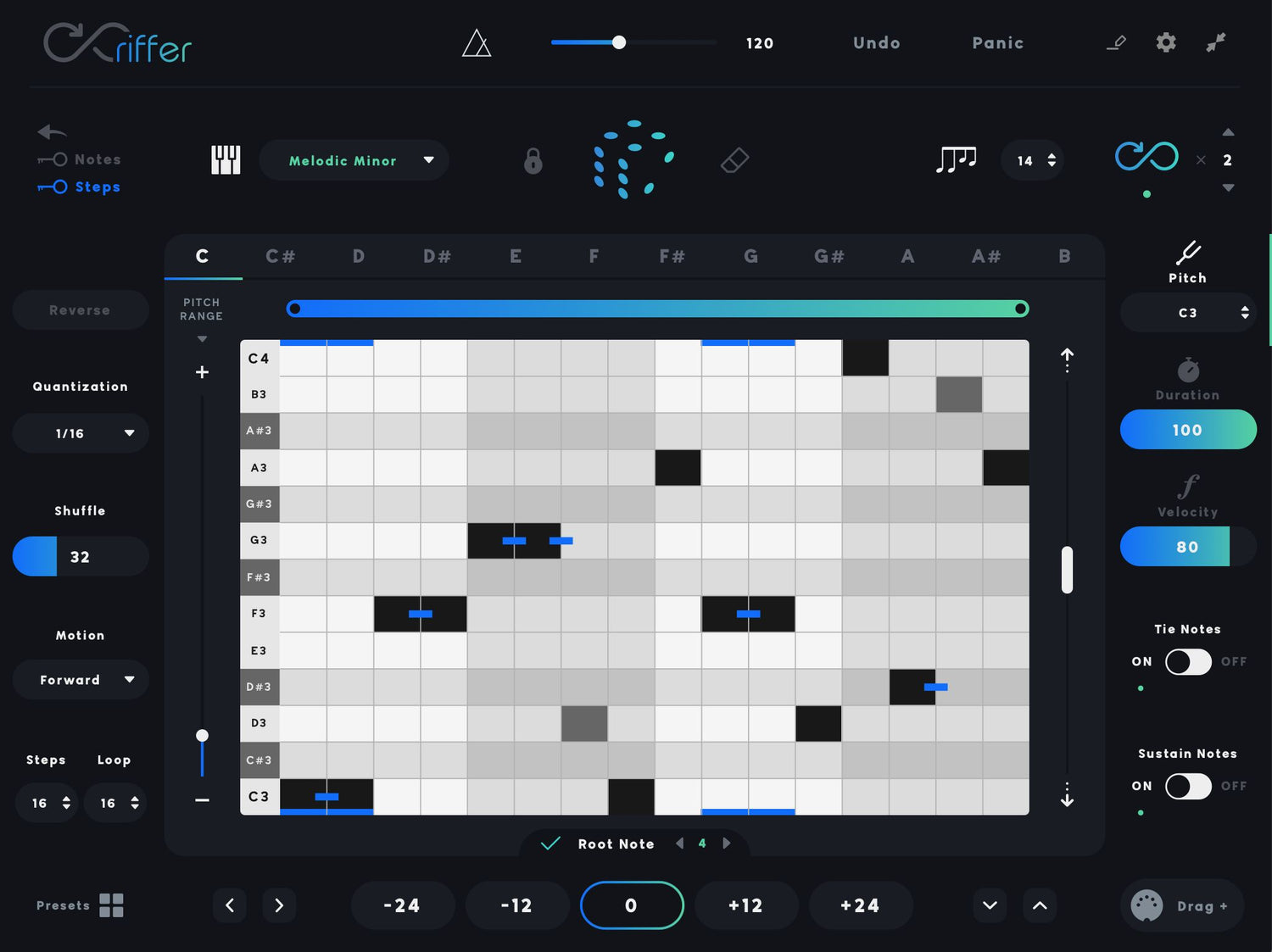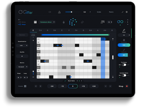 Du kan generere friske ideer, sekvenser, melodier, riffs og musikalske mønstre og forvandle dem til noget, der er dit eget. Eller lad softwaren køre uendeligt ved at bruge infinity mode.