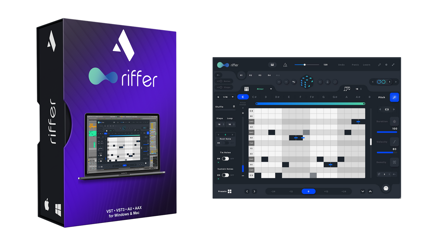 Introduktion af 'Riffer', et smart MIDI-værktøj, der genererer musikalske riffs og sekvenser ved at kombinere pitch, duration, velocity & density. Det kan generere uendelige tilfældige riffs.