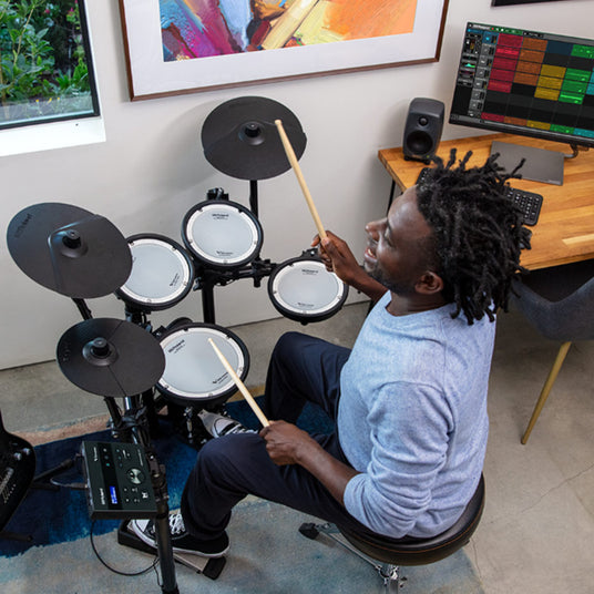 Roland TD513 gør det nemt at integrere trommesættet i dit kreative workflow. Med USB-C audio/MIDI-interface kan du optage direkte til din computer og styre din DAW uden ekstra lydkort, mens Bluetooth-funktionaliteten giver dig mulighed for at streame dine backing-tracks trådløst og jamme med dine yndlingsnumre. De indbyggede coachingfunktioner hjælper dig med at forbedre timing, præcision og teknik, hvilket gør sættet ideelt for både begyndere og øvede spillere.