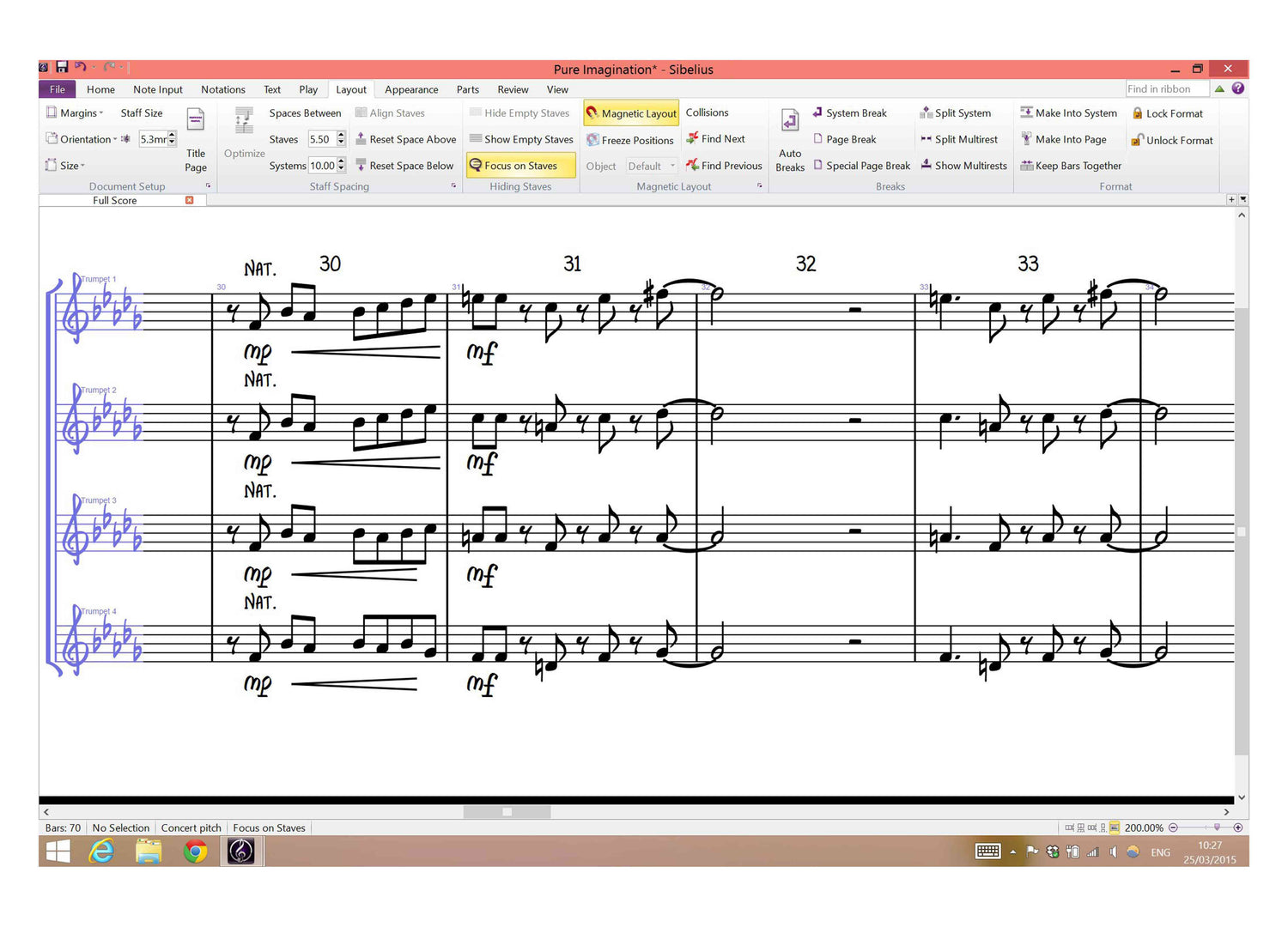 - Incidi in modo intelligente - Crea partiture professionali belle e rapidamente con strumenti di notazione avanzati e capacità di modifica multipla. Aggiungi legature, dinamiche, legami o altre linee di pentagramma su più strumenti e apporta modifiche a battute, testi espressivi e tecnici, e testi tutto in un'unica azione. Sibelius spazia intelligentemente note ed elementi, mantenendo tutto in perfetto allineamento.