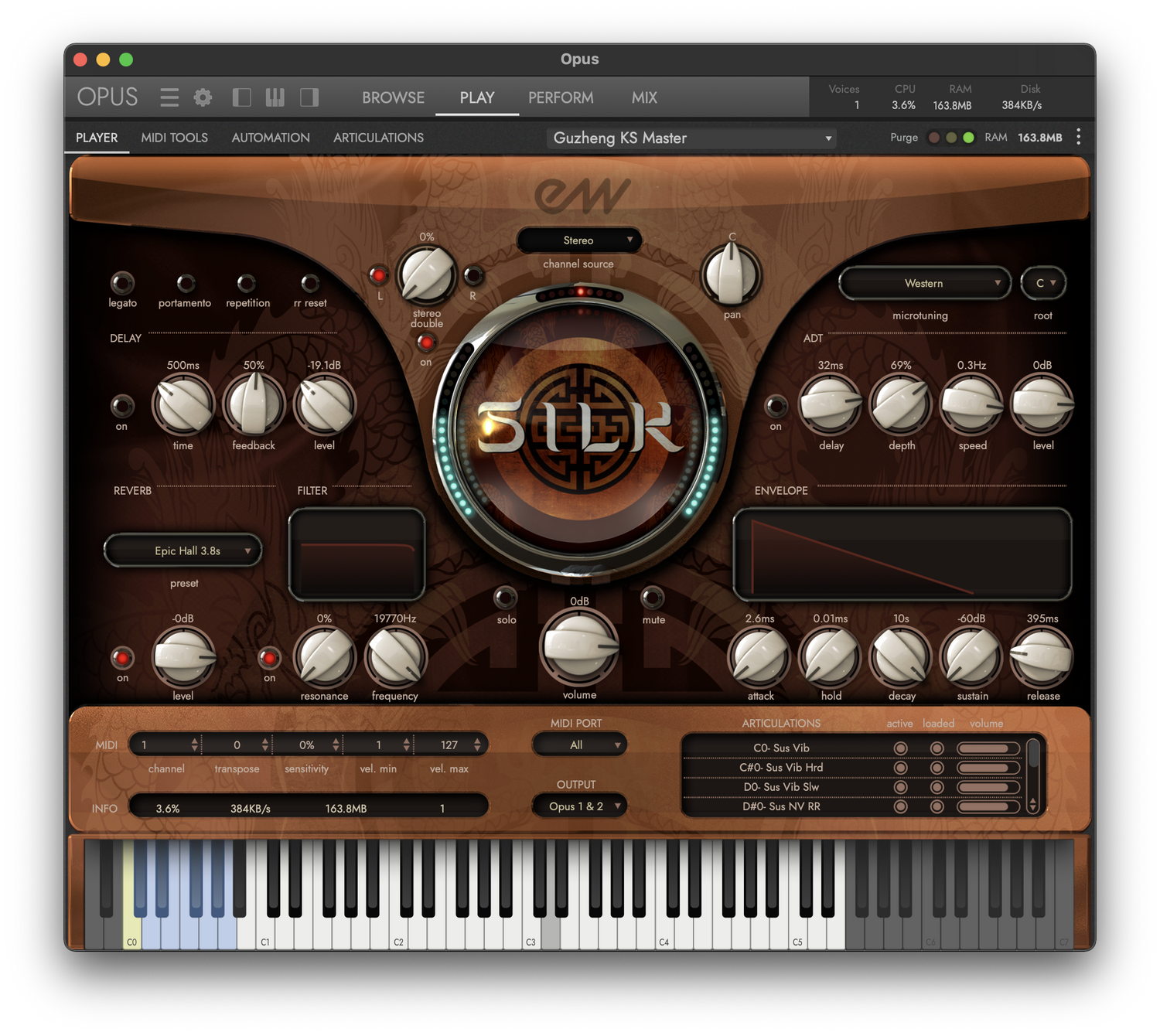 Tutti gli strumenti presenti in SILK sono multi-campionati con estrema attenzione ai dettagli, offrendo il massimo in espressione. EastWest/Quantum Leap SILK contiene articolazioni estese, campionamento degli intervalli (dove appropriato), round robin (campioni alternativi), scripting legato e frasi per dare la sensazione di una performance fluida e senza sforzo - come seta. Ogni musicista registrato per SILK è un maestro del suo strumento, fornendo il miglior e più accurato suono disponibile. SILK consente anche agli utenti di adattare gli strumenti utilizzando dozzine di micro accordature nel tono di loro scelta. Questo sistema di micro accordatura è il primo del suo genere ed è una vera innovazione per OPUS.