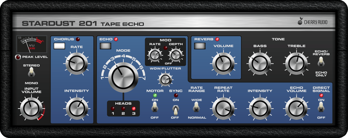 Lo Stardust 201 Tape Echo di Cherry Audio include funzionalità delle unità originali RE-201 e RE-301 Space Echo, e abbiamo aggiunto alcune delle nostre per creare un effetto echo a nastro dal suono fantastico, super flessibile, ideale, che non si guasta mai e non ha mai bisogno di demagnetizzazione, il tutto per meno del prezzo di un nastro audio di ricambio per Space Echo!
