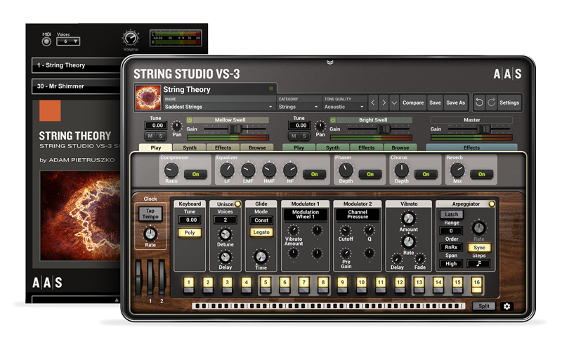 From strings to a wide selection of basses, leads, plucks, pads, and keys, with tonal qualities ranging from acoustic, through electric, up to far-out synthetic, String Theory forms a sweeping collection that will tackle any musical genres with ease. And with presets notes, Adam Pietruszko shares a tremendous amount of insight about synthesis as well as expert information to take full advantage of String Studio VS-3’s capabilities.