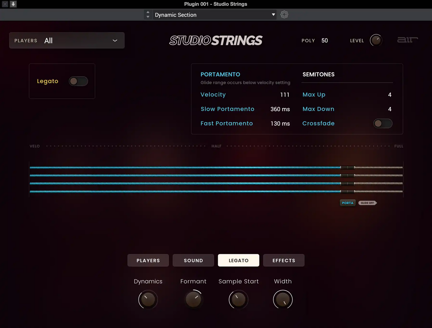 Når du bruger Studio Strings, kan du vælge mellem instrumenteringsmuligheder, der åbner op for uendelige muligheder for lydskabelse. De fire inkluderede modeller, sammen med forskellige artikulationer, giver dig et helt orkester lige ved hånden.