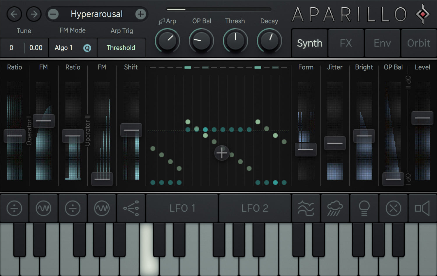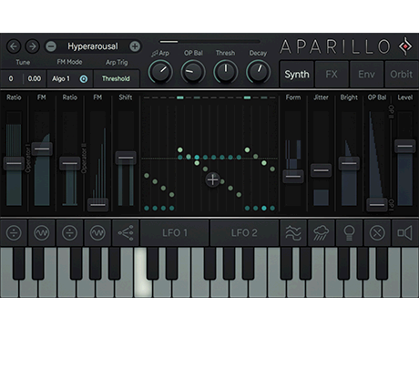 Aparillo è un avanzato sintetizzatore FM a 16 voci, progettato per maestose movimenti sonori. Un'astuta disposizione di sintesi, modellamento d'onda, filtraggio, FX e modulazione si sviluppa in un serio strumento di design sonoro per creazioni sonore epiche. Assicurati di dare un'occhiata all'Orbiter, un mass-controller per temi blockbuster immediati e istantanei.