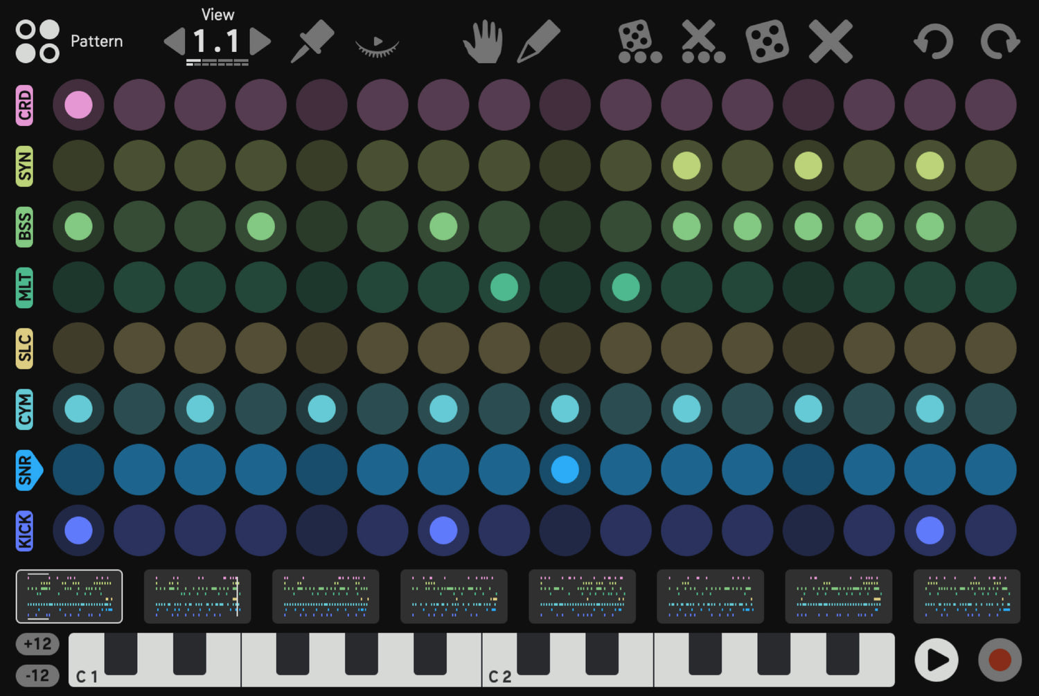 Puoi anche attivare pattern tramite MIDI per un'integrazione senza soluzione di continuità nel tuo DAW o durante le performance dal vivo. Il Song Sequencer ti consente di creare composizioni più lunghe, con funzionalità come Pattern Repeats, FX, Track Mutes e il potente Song Randomizer.