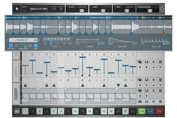 - Slicer, Bass, Beat and an Effect Sequencer