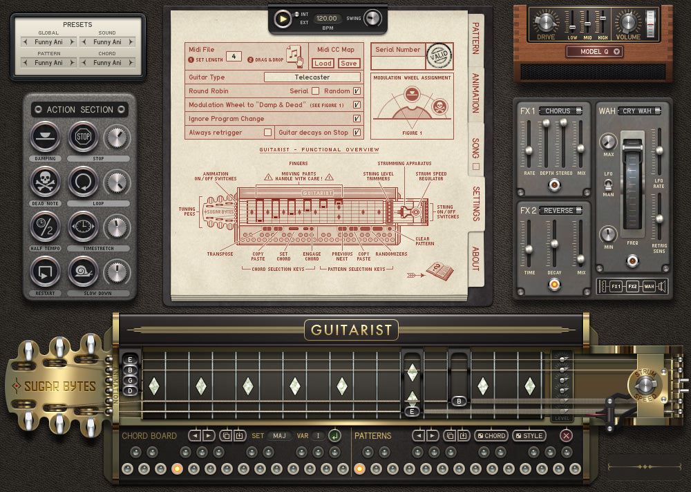 Guitarist è una chitarra virtuale progettata per emulare le parti ritmiche suonate su una chitarra elettrica. Il vero chitarrista è stato trasformato in un sistema di sequencer a passi con un enorme livello di personalizzazione per quanto riguarda gli accordi o i modelli di diteggiatura e un controllo dettagliato sulle sfumature e l'espressione autentiche.