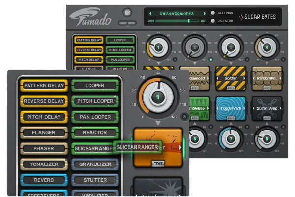 Con accesso immediato a otto effetti e controllo immediato su parametri chiave, Turnado è garantito per causare devastazione sulla pista da ballo, distruggendo ritmi e spezzando break a proporzioni folli.