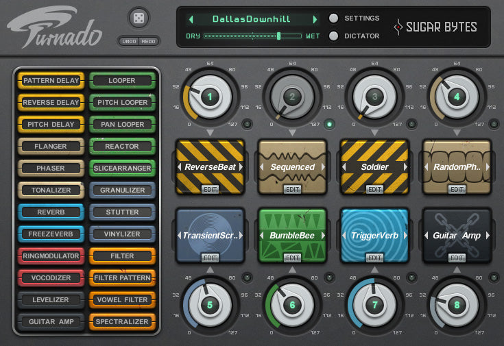Quando apri uno dei pannelli di modifica degli effetti, inizi rapidamente a renderti conto di quanto sia potente Turnado. Con la possibilità di modificare cinque diversi parametri, il grado di controllo disponibile è sbalorditivo.