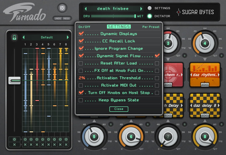 Turnado è solido come una roccia e leggero sulla CPU, se hai intenzione di usarlo in una performance dal vivo o, ad esempio, in una dozzina di istanze simultaneamente.