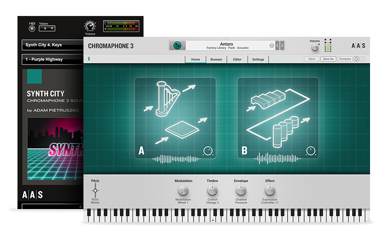Resident sound designer Adam Pietruszko omfavner retro-futurisme med Synth City — en samling af 100 presets, der sammensmelter nostalgien fra 1980'ernes vibe med Chromaphones moderne twist.