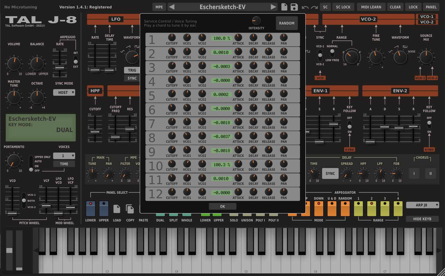 TAL-J-8 è un plug-in sintetizzatore che emula meticolosamente il leggendario Jupiter 8 ed è calibrato secondo il nostro dispositivo hardware, offrendo la riproduzione più autentica e fedele del suo suono iconico.