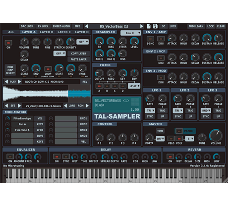 TAL-Sampler non è solo un campionatore. È un sintetizzatore modellato analogicamente completo con un motore di campionamento come fonte sonora, inclusa una potente matrice di modulazione e filtri a oscillazione autonoma di alta qualità.