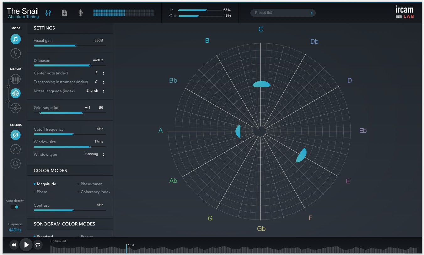 The Snail is a very high-precision frequency-domain analyzer that delivers an intuitive representation of sounds based on the scales and notes aligned in spectrally active zones.