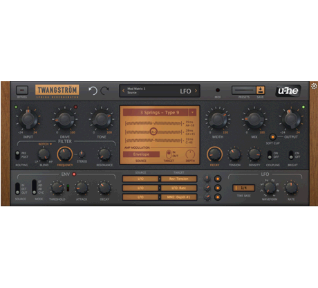Essendo un'emulazione fedele di un dispositivo meccanico, Twangstro?m deve essere maneggiato con cura. Molti dei parametri tecnici sono regolabili dall'utente in tempo reale, e questi possono essere controllati tramite MIDI o utilizzando l'LFO interno e il generatore di inviluppo. Con il suo filtro risonante multimodale, Twangstro?m è uno strumento unico e potente che può fornire texture altamente insolite e in evoluzione... specialmente quando il segnale viene manipolato utilizzando la matrice di modulazione!