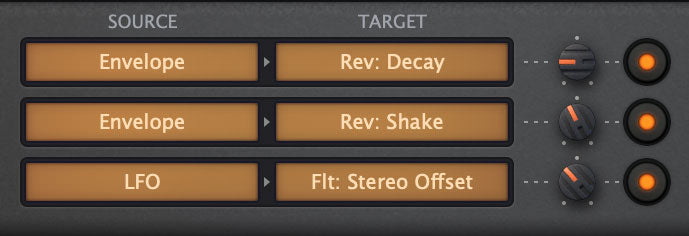 La matrice di modulazione ha tre slot di modulazione di uso generale, e sì, puoi selezionare shake come uno dei tanti obiettivi per modulare il controllo di Twang!