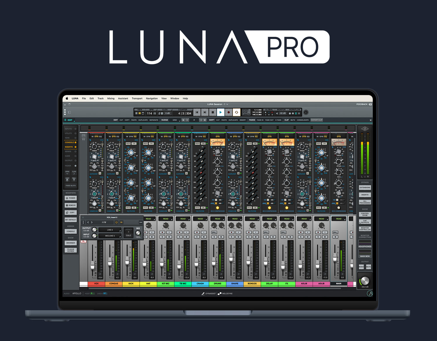LUNA Pro sblocca l'esperienza analogica definitiva, con Console modellata esperta e Summing Extensions da API, Studer e Ampex integrati direttamente nel mixer — oltre a decine di UAD Plug-Ins, strumenti virtuali, strumenti ARA e funzionalità professionali per portare le tue canzoni da una demo a un disco finito.