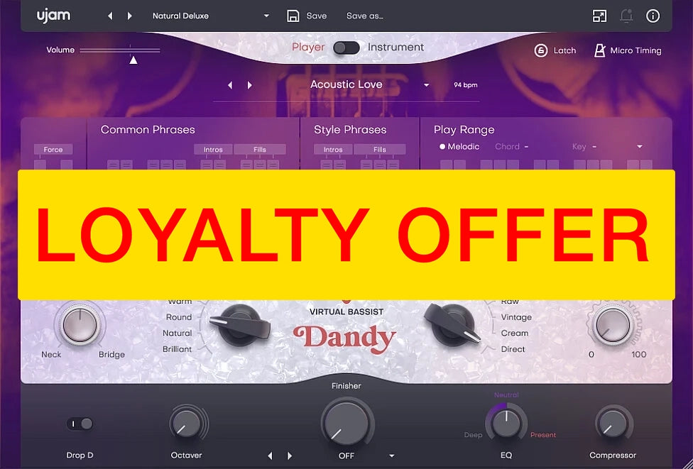 DANDY è perfetto per tutti i produttori di qualsiasi livello di abilità. I controlli infallibili garantiscono che i principianti ottengano risultati dal suono fantastico che non sembrano loop ripetitivi preconfezionati. I musicisti esperti possono facilmente bypassare le funzionalità del musicista virtuale e suonare le parti di basso esattamente come desiderano. Tutti ottengono un ottimo basso nelle loro produzioni!