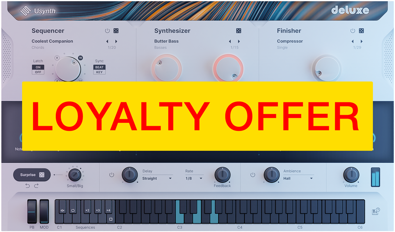 Tutte e tre le sezioni di Usynth, Sequencer, Synthesizer e Finisher, vengono precaricate con preset pronti all'uso. Basta sfogliare, mescolare e abbinare per costruire il tuo suono in pochi secondi.