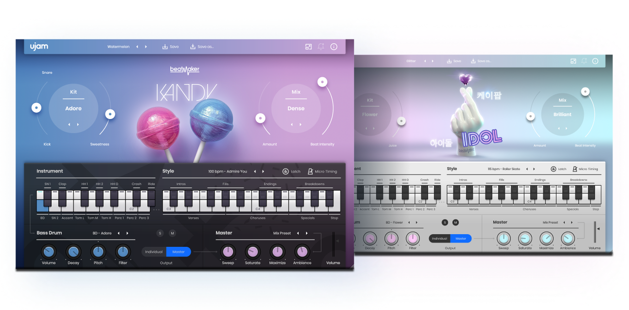 Rendi vivi i tuoi brani con Beatmaker KANDY per ritmi pop lucidi e gli stili vibranti di K-Pop e EDM di Beatmaker IDOL. Perfetto per creazioni da classifica.