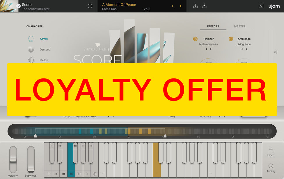 Scegli tra Abyss, Damped, Mellow, Pure e Royal per ottenere il carattere perfetto per la tua colonna sonora. Finalizza la costruzione con 45 impostazioni di Finisher e 45 impostazioni di Ambience tra cui scegliere.