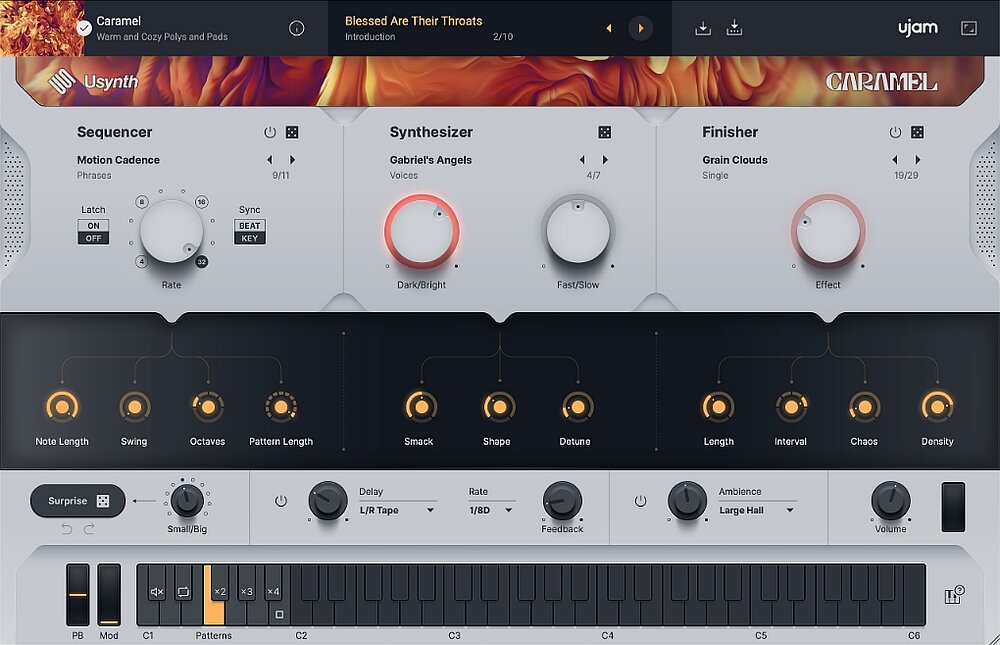 Usynth Caramel viene fornito con tutti i suoni pad ricchi e lussureggianti che potresti mai desiderare. Creare paesaggi sonori ambientali da sogno è facile, con il lavoro pesante fatto dietro le quinte (selezione wavetable, unisono, effetti e molto altro), il che significa meno tempo speso nella progettazione del suono e più tempo speso a finire le canzoni!