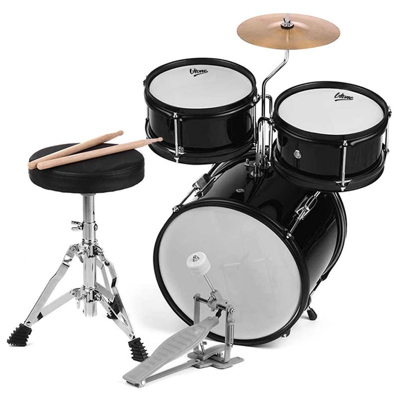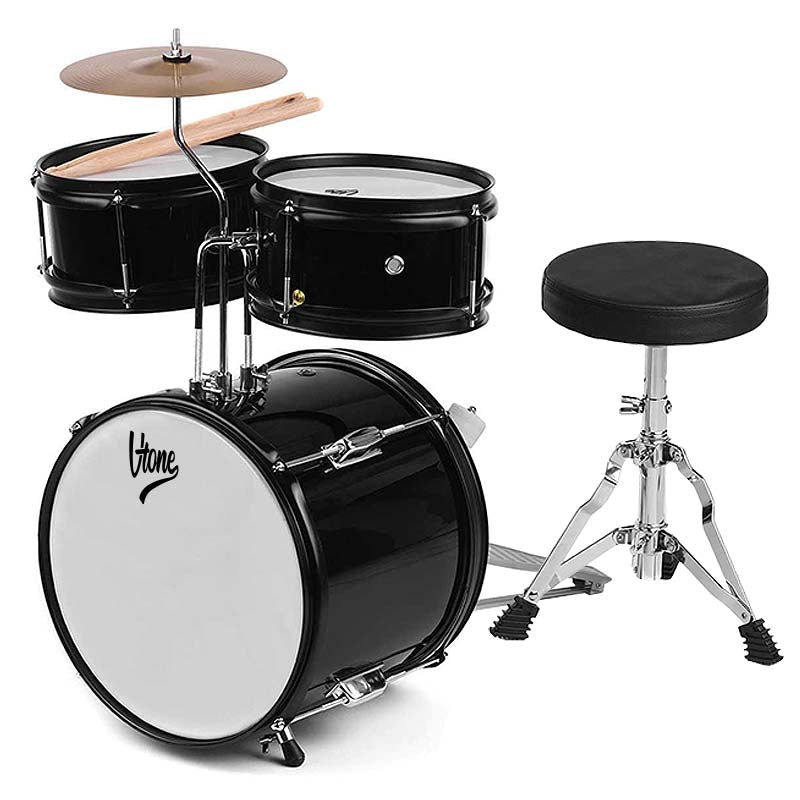 VTONE VD JUNIOR BKis an inexpensivedrum set for children. It includes a bass drum along with a single bass drum pedal and centermounted snare drum, tom drum and crash cymbal. The set also includes round drum stool, adjustment key and drumsticks. This is an acoustic drum set intended mainly for learning. On the VTONE VD JUNIOR set, you can develop the right habits needed for further playing. The drums are made of poplar wood, which has excellent acoustic properties, while the cymbal is made of steel. The set can be adjusted to each childs individual preferences. This is a small and fairly inexpensive drum set, available at the best price from Music Express!Technical specificationColorBLACKDrum materialpoplar woodBass drum14 x 10, 2x4 lugsSnare drum8 x 6, 2x4 lugsTom drum8 x 4, 2x3 lugsCymbal8 steelIncludedsingle bass drum pedalround drum stooladjustment keydrumsticksOriginal packaging and filling.