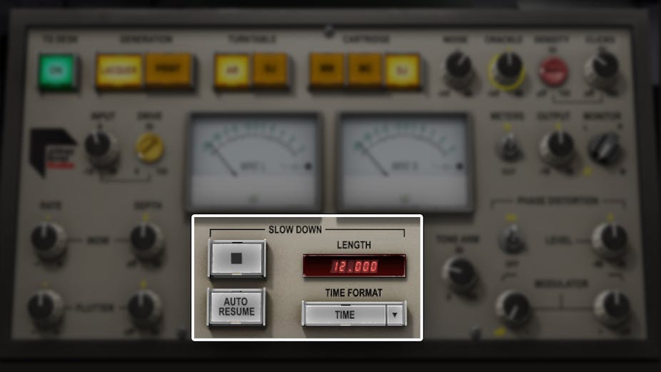 Quando l'autenticità è fondamentale, aggiungi un po' o molto delle imperfezioni del vinile: rumore del giradischi, crepitii, clic, wow, flutter e persino la distorsione di fase che si verifica quando la puntina si muove in modo più obliquo nelle scanalature interne.