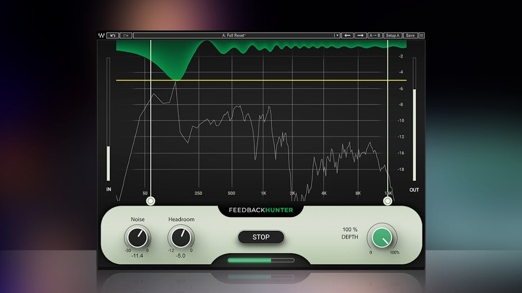 Feedback Hunter valuta le interazioni microfono-altoparlante utilizzando rumore bianco, affinando il suo controllo del feedback per il tuo specifico ambiente acustico.