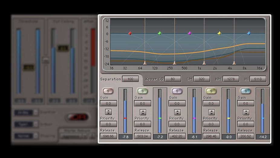 Separa le bande per la massima isolamento, o riduci la separazione in modo che l'energia di una banda possa influenzare le bande adiacenti. Puoi persino eliminare completamente la separazione, per la conversione in un limitatore a banda larga con EQ a fase lineare.