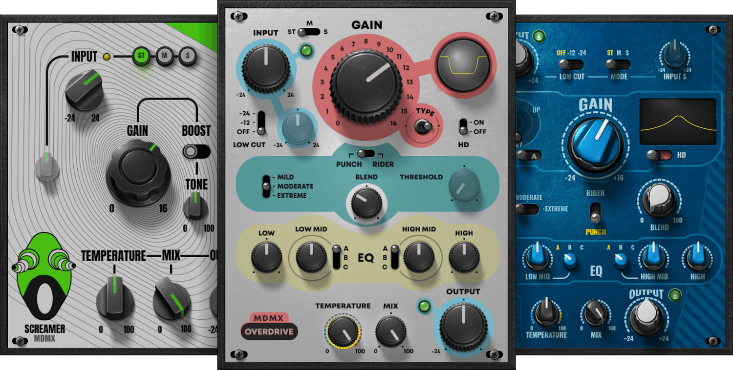 La distorsione non è solo per i chitarristi. Anche se MDMX è stato ispirato da iconici stompbox per chitarra, queste versioni virtuali versatili offrono più funzionalità, più opzioni, elaborazione mid-side, risposta dinamica e altre migliorie che rendono MDMX applicabile a tutti gli strumenti.