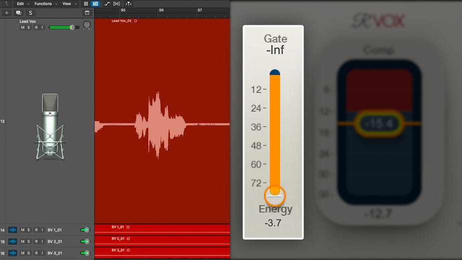 Invece di utilizzare un gate a forza bruta per eliminare il rumore, R-Vox utilizza una dolce espansione verso il basso. Una volta che R-Vox rileva che non ci sono voci, l'uscita scende dolcemente, ma è pronta a risalire istantaneamente quando necessario.