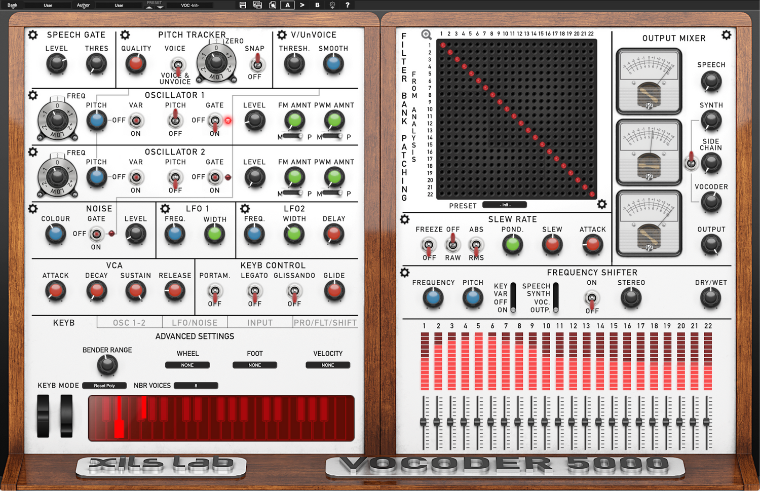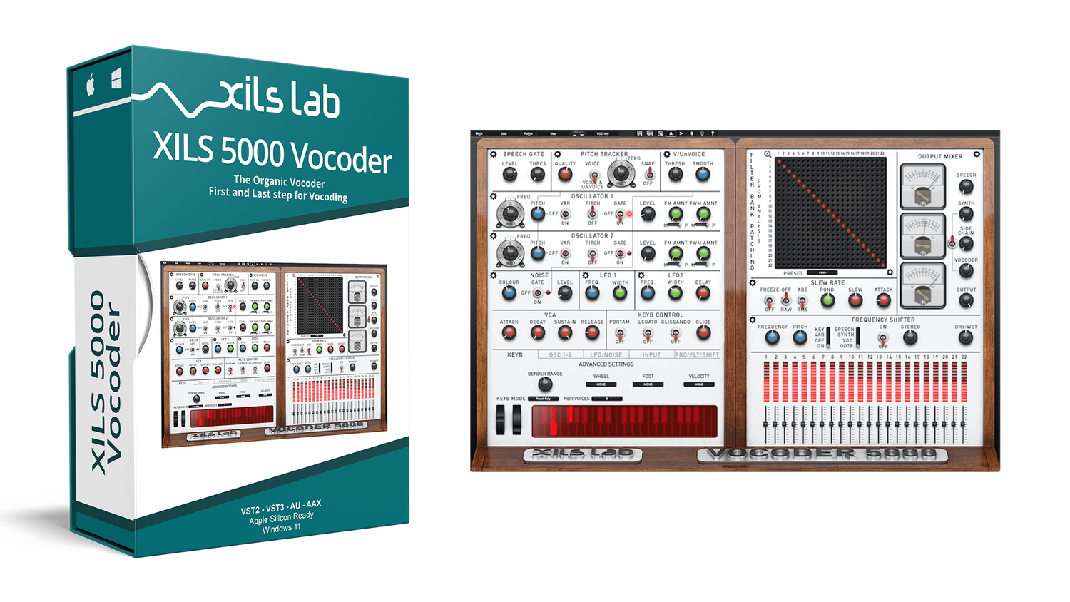Vocoder 5000 is inspired by the EMS Flagship Vocoder (EMS 5000 -1976- Probably the most complex and powerful analog Vocoder ever built). XILS-lab used the knowledge acquired during the emulation of both the VCS3 synthesizer and the VP300 VocoderPlus to develop the XILS Vocoder 5000 Model.