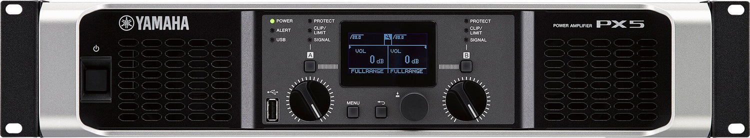 Yamaha PX5 è un amplificatore professionale a 2 canali, progettato per tecnici del suono, DJ e installatori che necessitano di alta potenza, elaborazione DSP precisa e funzionamento affidabile in un formato rack compatto. Con un'uscita fino a 2 × 800 W a 4 Ω, PX5 offre abbondante potenza per alimentare sia altoparlanti PA che monitor, indipendentemente dal fatto che tu stia lavorando con club più piccoli, eventi di medie dimensioni o installazioni fisse.